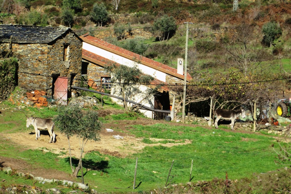 Percorremos o trilho que nos levou à praia fluvial, no verão muito concorrida deve ser muito agradável, a praia é muito gira e tem sombras, ali ao pé dois burros pastam e fazem parte desta linda paisagem.
